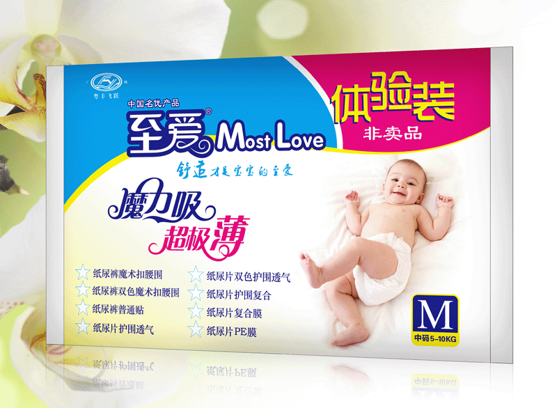 至愛嬰兒紙尿片是廣州粵豐飛躍實業有限公司主打品牌產品。產品超薄超柔軟,超能吸,有效使寶寶皮膚保持干爽健康,幫助寶寶的小屁屁遠離尿濕,防止尿布疹。