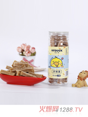 您所在位置:首頁>東莞市德力恒嬰童用品有限公司>功夫小鴨開味堡形球形條形片形多種形狀水果條170g240g