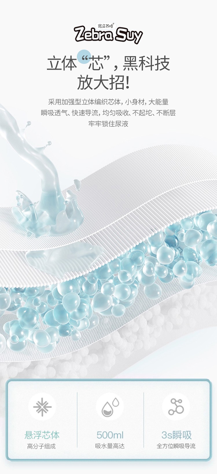 斑馬蘇怡紙尿褲/拉拉褲,大環(huán)腰加高護(hù)圍,加寬腰圍設(shè)計(jì),柔軟有彈性,貼合身形不勒肚肚;輕柔蓬松3D熱風(fēng)立體棉層雙倍親膚的柔軟,如云觸感,宛若初生;薄約0.1cm輕薄芯,薄如一枚硬幣,小PP沒負(fù)擔(dān);立體“芯”,不止于薄還超能吸,增加前后吸水面積,容納寶寶大尿量;360°環(huán)抱寶寶小腰身,配合3D立體剪裁,動感貼合寶寶曲線,隨心所動;采用加強(qiáng)型立體編織芯體,內(nèi)含魔力縮水珠,瞬吸透氣,快速導(dǎo)流,均勻吸收,不起坨、不斷層,牢牢鎖住尿液;雙層5cm加高防漏側(cè)擋,隨心動;靈敏智能尿顯,變色快,勤更換,給寶寶看得見的安心呵護(hù)。