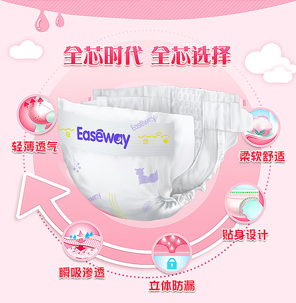 宜氏紙尿褲,采用3D打孔親膚層,打孔表層在皮膚和尿褲之間形成空氣通道,當尿液接觸的時候,首先流入打孔通道中快速吸收,使皮膚接觸面始終保持干爽。使用輕巧透氣的新研發(fā)芯體,保證嬰兒屁股舒適干爽,讓寶寶的肌膚時刻保持充分呼吸。宜氏紙尿褲專為長時間使用而設計,保證嬰兒屁股舒適干爽,不會因長期使用而造成斷裂,夜間長效干爽。