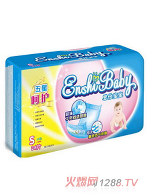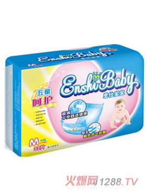 柔----質地柔軟,嬰兒皮膚極其嬌嫩,稍微粗糙的質地,就會使bao--bao受到摩擦傷害,劣質材料加工的紙尿褲甚至會把bao--bao腿部摩得又紅又腫。恩仕bao--bao紙尿褲采用特級柔軟的親膚棉質,云朵一般柔軟,貼心呵護bao--bao嬌嫩肌膚。