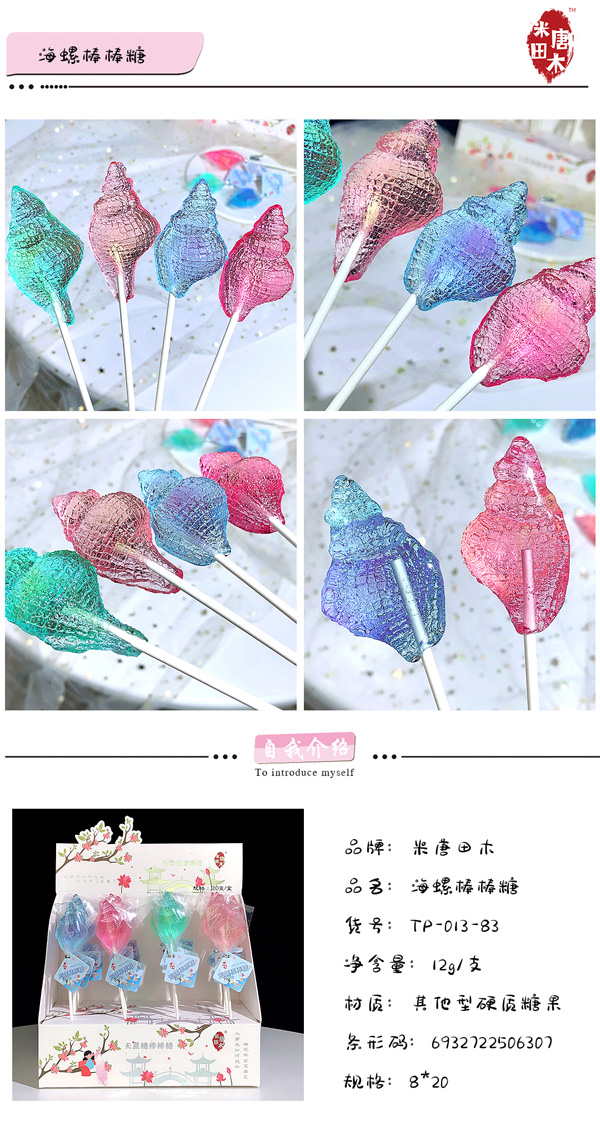 米唐田木海洋系列海螺棒棒糖產品展示