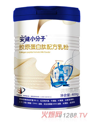 安健小分子膠原蛋白肽配方乳粉采用全功能強化營養配方,每罐奶粉添加20000mg國家專利肽粉,是普通乳鐵調制乳粉的50倍。